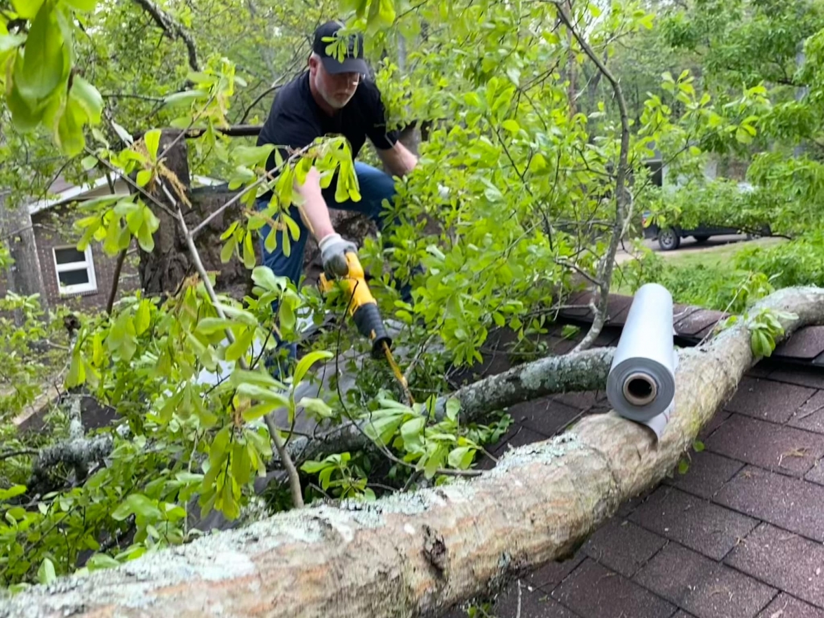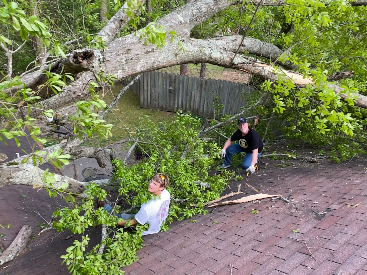 A tree fell on this home and Dixie Roofing repaired it.
